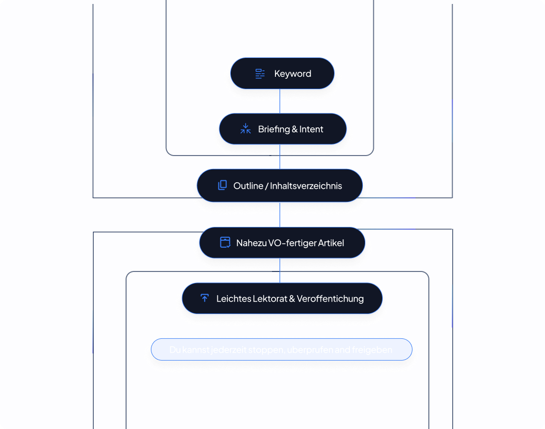 Danach wird aus Keywords eine laufende Content-Pipeline für mehr Rankings, Sichtbarkeit und Vorsprung.
