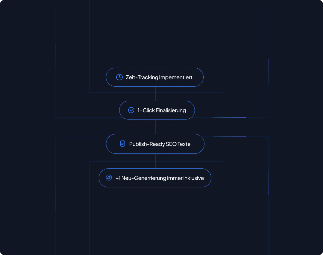 Die Artikel sind bereits publish-ready – du prüfst nur noch und finalisierst mit einem Klick. Dank integriertem Zeit-Tracking siehst du für jeden Artikel sekundengenau, wie viel Arbeitszeit eingeflossen ist.