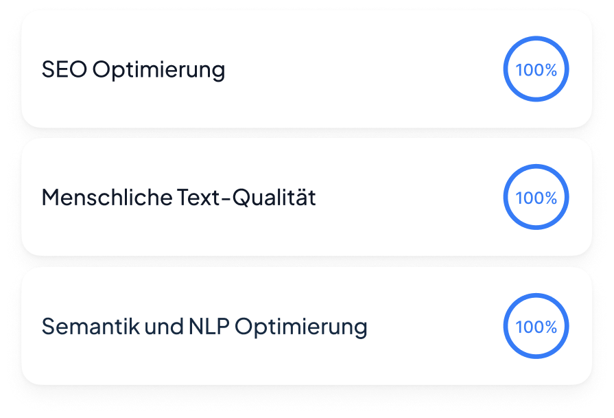 Nach mehr als 2.500 erstellen Texten mit Top Rankings für unsere Kundenprojekte sowie eigene Plattformen können wir mit breiter Brust sagen, dass wir im DACH Raum einer der Tools mit dem qualitiv höchsten Output entwickelt haben.